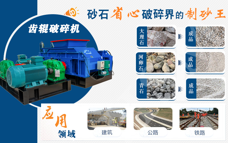 河卵石、方解石、石英、玻璃、大理石、鵝卵石、膨潤土、鐵礦石、青石、山石、石灰石、風(fēng)化砂、輝綠巖、花崗巖、玄武巖等物料的破碎制砂工作。