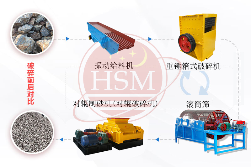 時產(chǎn)100噸對輥破碎機(jī)生產(chǎn)線制砂生產(chǎn)流程